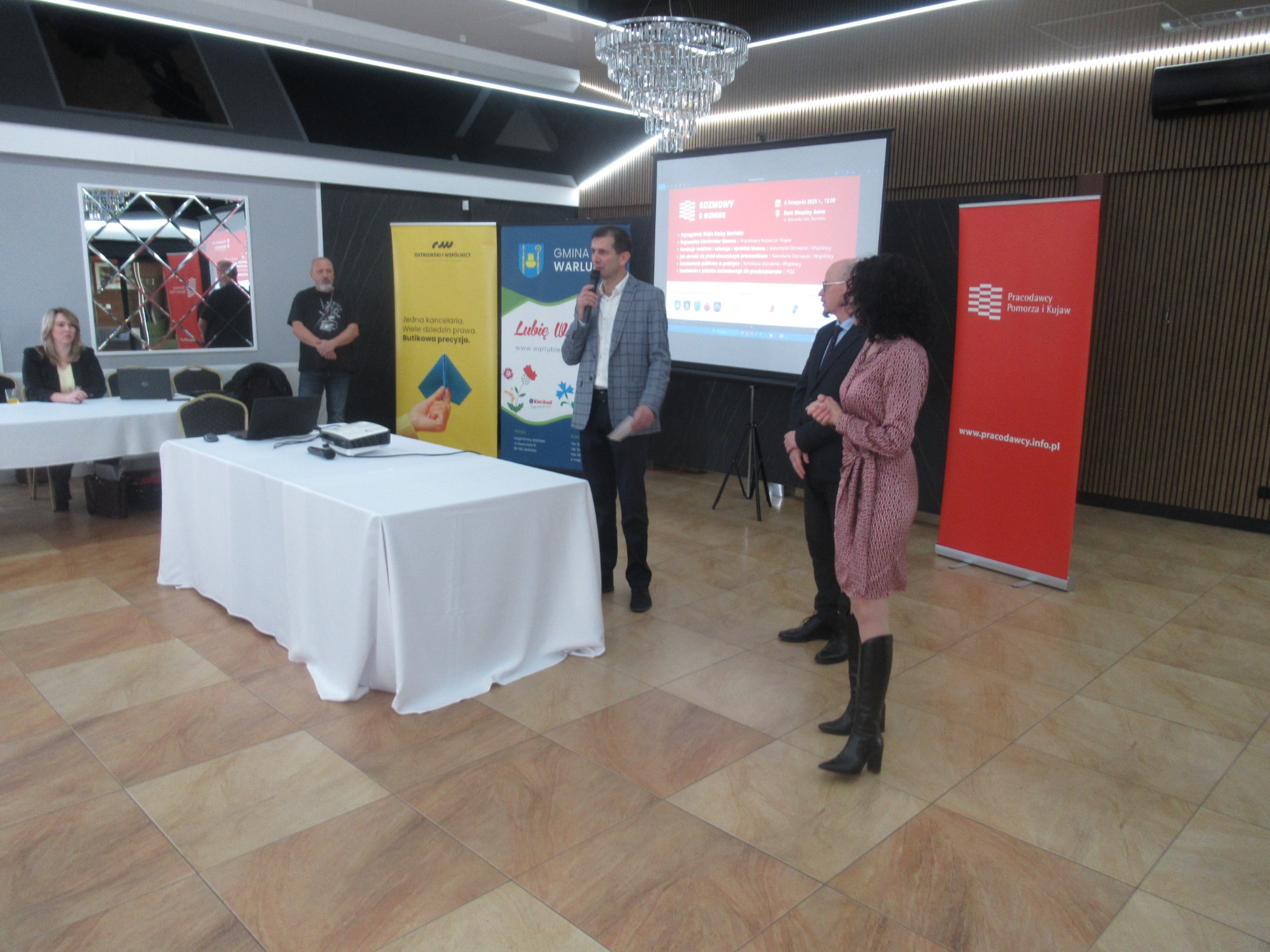 Gmina Warlubie – jako gospodarz wydarzenia – wspólnie z gminami Dragacz, Jeżewo, Nowe i Osie oraz we współpracy z Pracodawcami Pomorza i Kujaw zorganizowała spotkanie networkingowe „Rozmowy o Biznesie”. W Domu Weselnym „Anna” przy ul. Bąkowskiej 34A przedsiębiorcy i samorządowcy rozmawiali o praktycznym wsparciu dla firm, prawie i podatkach oraz możliwościach rozwoju inwestycji w regionie.
