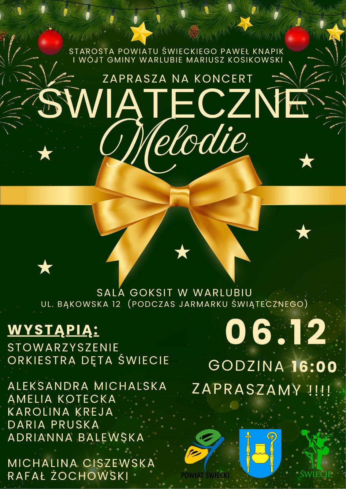 Już 6 grudnia o godzinie 16:00 w sali GOKSiT w Warlubiu (ul. Bąkowska 12) odbędzie się wyjątkowy, pełen magii koncert „Świąteczne Melodie”, towarzyszący Jarmarkowi Świątecznemu.