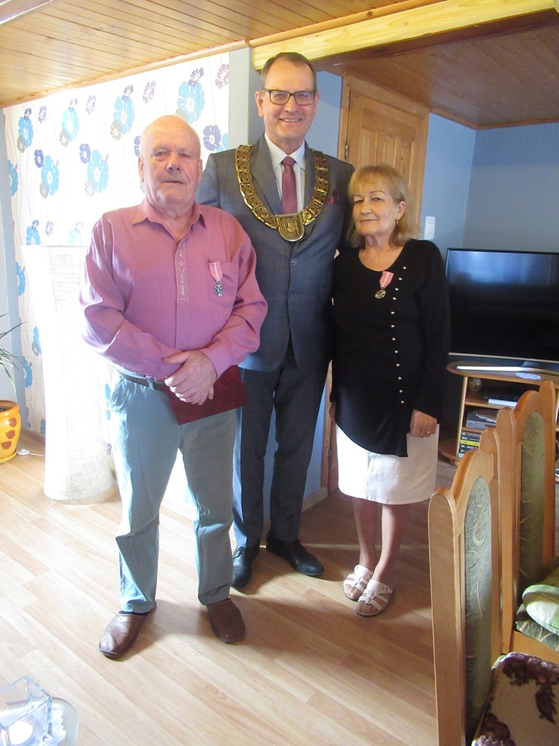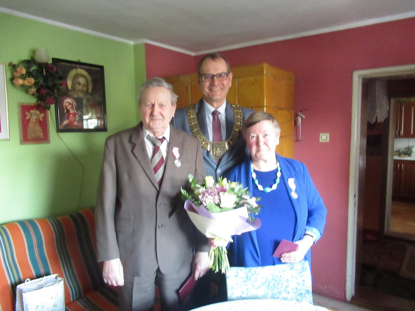 Wójt Gminy Warlubie dr inż. Eugeniusz Kłopotek wraz z Kierownikiem Urzędu Stanu Cywilnego Panią Lucyną Kasperek w dniu 18 marca 2022 r. wręczyli Medale za Długoletnie Pożycie Małżeńskie przyznawane przez Prezydenta Rzeczypospolitej Polskiej Pana Andrzeja Dudę. Jest to cywilne odznaczenie państwowe, którym honorowane są pary, które przeżyły wspólnie, co najmniej 50 lat w związku małżeńskim.