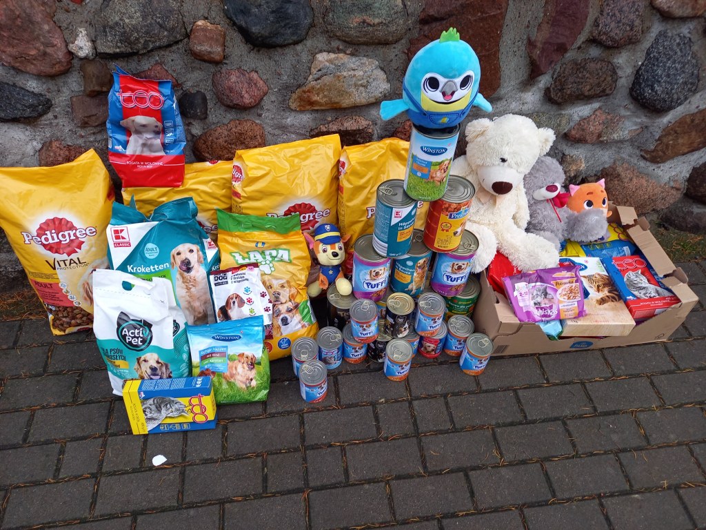 Uczniowie Szkoły Podstawowej im. Jana Pawła II w Wielkim Komorsku podjęli się innego sposobu na wsparcie działań schroniska – postanowili zebrać całkiem sporą ilość suchej oraz mokrej karmy dla bezdomnych piesków i kotków. Dzieci odwiedziły schronisko, by przekazać dary, a dzięki uprzejmości pani Kasi miały możliwość zwiedzenia schroniska, zjedzenia pysznej kiełbaski przy ognisku oraz pójścia na wspólny spacer z Fusią i Fliperem.