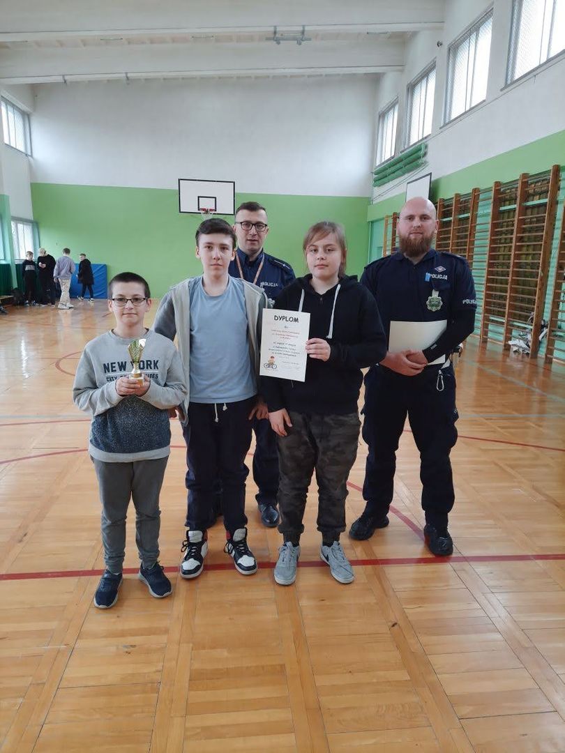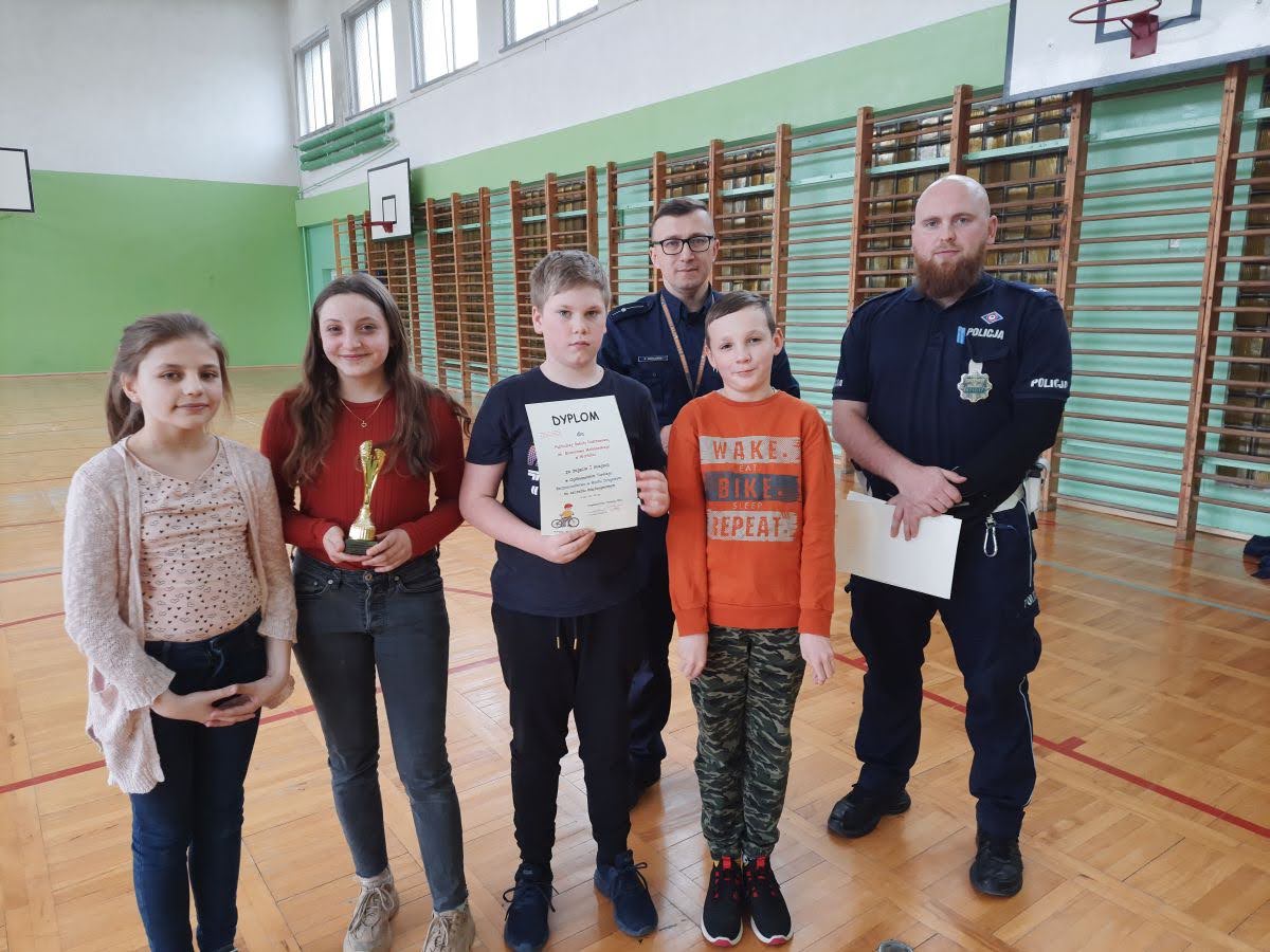"Po dwóch latach przerwy Komenda Powiatowa Policji w Świeciu powróciła do organizacji Ogólnopolskiego Turnieju Bezpieczeństwa w Ruchu Drogowym (BRD). W tym roku eliminacje do części powiatowej turnieju odbyły się w Publicznej Szkole Podstawowej im. Bronisława Malinowskiego w Warlubiu i brały w niej udział drużyny reprezentujące gminy; Nowe, Dragacz i Warlubie. Po części teoretycznej, na którą składał się test dotyczący 25 pytań o przepisach ruchu drogowego i 10 pytań o kolejności przejazdu przez skrzyżowania, uczniowie mieli do pokonania na rowerze tor składający się z sześciu przeszkód. Po podsumowaniu wyników obu części konkursu, młodsza drużyna PSP Warlubie zajęła pierwsze miejsce i będzie brała udział 27 kwietnia w Świeciu w Turnieju Powiatowym, w eliminacjach do Turnieju Wojewódzkiego. Trzymamy kciuki za dobry wynik.