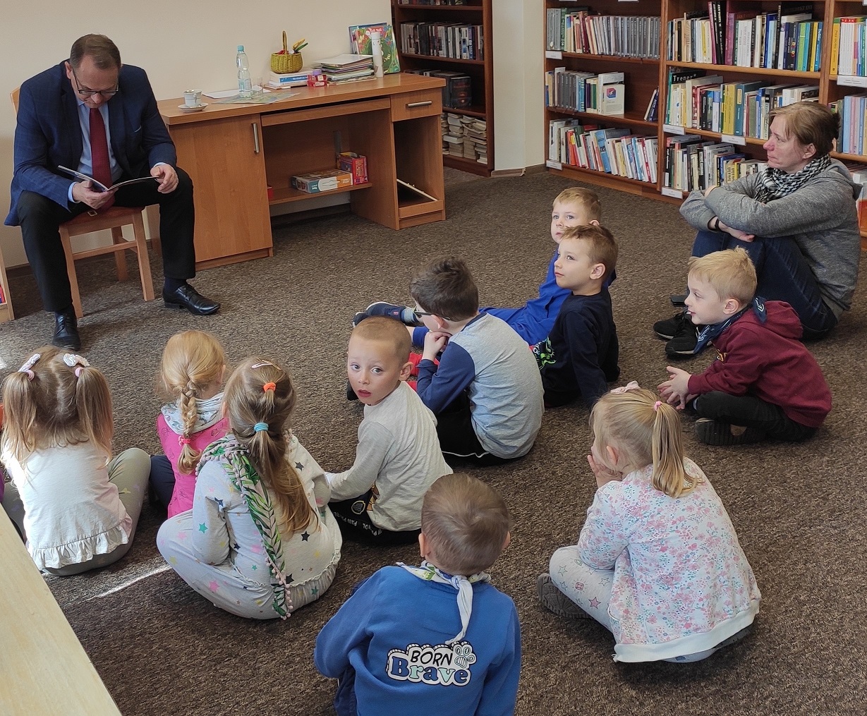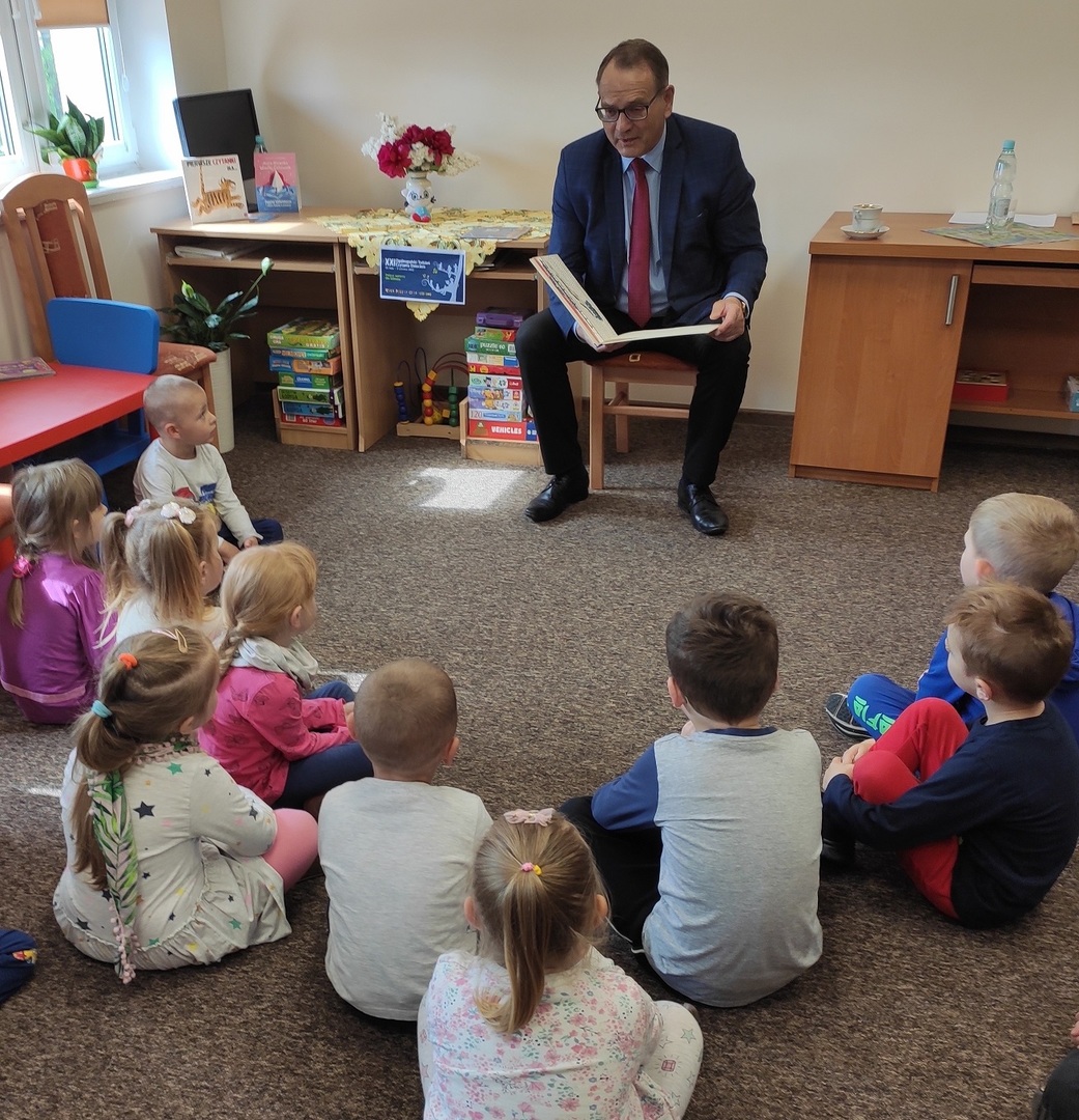 W czasie XXI Ogólnopolskiego Tygodnia Czytania Dzieciom, który w tym roku przebiegał pod hasłem: "Polscy autorzy dla klimatu", Wójt Gminy Warlubie Eugeniusz Kłopotek, przybył do Gminnej Biblioteki Publicznej, by przeczytać wiersze Juliana Tuwima oraz książkę pt. "Kicia Kocia: co z tymi śmieciami?". Uważnymi słuchaczami były dzieci z grupy "Motylki" z Oddziału Przedszkolnego w Warlubiu.