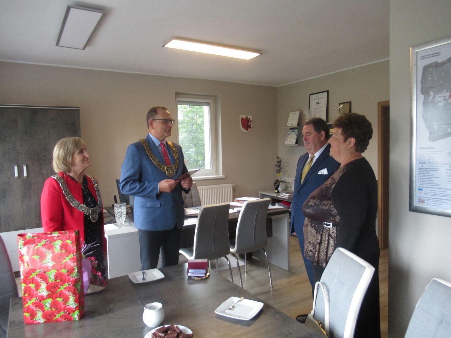 Wójt Gminy Warlubie dr inż. Eugeniusz Kłopotek wraz z Przewodniczącą Rady Gminy Panią Marią Jankowską oraz Kierownikiem Urzędu Stanu Cywilnego Panią Lucyną Kasperek w dniu 21 czerwca 2022 r. wręczyli Medale za Długoletnie Pożycie Małżeńskie przyznawane przez Prezydenta Rzeczypospolitej Polskiej Pana Andrzeja Dudę.