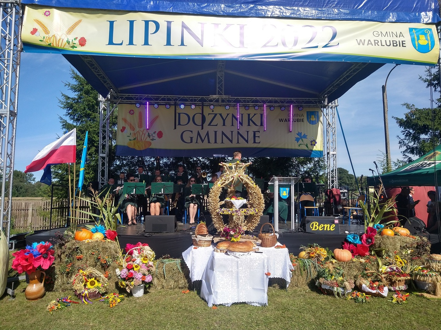 Dożynki to święto połączone z obrzędami dziękczynnymi za ukończenie żniw i prac polowych. Jest to jedno z ważniejszych uroczystości w gminie. W niedzielę, 4 września 2022 r. w Lipinkach, za plony podziękowali rolnicy z Gminy Warlubie. Dożynki rozpoczęły się uroczystą Mszą Świętą w kościele w Lipinkach, a następnie przeszedł korowód dożynkowy na teren szkoły Podstawowej w Lipinkach, gdzie na uczestników czekało wiele atrakcji. Starostowie Dożynek Pani Justyna Manikowska-Łagódka oraz Pan Henryk Szczepański, przekazali Wójtowi Gminy Warlubie chleb dożynkowy.