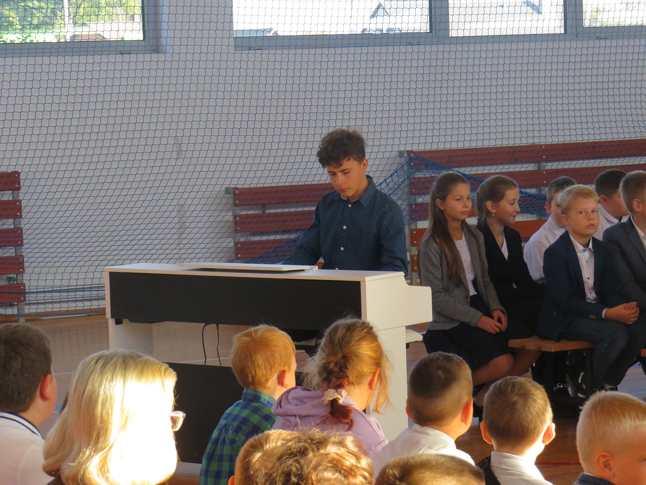 Na zakończenie całej uroczystości nauczyciele i pracownicy szkoły wysłuchali koncertu ucznia kl. 8a, który na pianinie zagrał kilka pięknych utworów muzyki klasycznej.