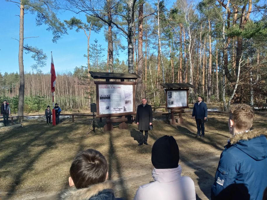 Pierwszego marca, w Narodowy Dzień Pamięci Żołnierzy Wyklętych, o godz. 11.00 Szkoła w Lipinkach zorganizowała patriotyczny apel w miejscu pamięci, gdzie został zamordowany Jan Sikorski pseudonim „Wilk”. Uroczystość rozpoczęła się wprowadzeniem sztandarów Specjalnego Ośrodka Szkolno-Wychowawczego w Warlubiu, Szkoły Podstawowej w Lipinkach oraz Ochotniczej Straży Pożarnej w Lipinkach. Po wprowadzeniu sztandarów, zebrani odśpiewali hymn państwowy, któremu towarzyszyło uroczyste podniesieni flagi państwowej na maszt. Dyrektor Szkoły w Lipinkach omówił rangę tego święta i przywitał zebranych gości - Wójta Gminy Warlubie Pana Eugeniusza Kłopotka, Przewodniczącą Rady Gminy Warlubie Panią Marię Jankowską, Księdza Proboszcza Parafii Lipinki Krzysztofa Ostasza, Zastępcę Nadleśniczego Nadleśnictwa Osie Panią Joannę Bock, Zastępcę Nadleśniczego Nadleśnictwa Dąbrowa Pan Dawida Kikulskiego, Dyrektora Specjalnego Ośrodka Szkolno-Wychowawczego Pana Tomasza Michalaka, Dyrektora Szkoły Podstawowej w Wielkim Komorsku Panią Emilię Kaliszewską Dyrektora Gminnego Ośrodka Kultury, Sportu i Turystyki w Warlubiu Panią Annę Kubczak – Kosicką, jak też delegacje - Stowarzyszenia Przyjaciół Lipinek, Rady Sołeckiej z Sołtysem Sołectwa Lipinki Panem Marcinem Szwarc, Nauczycieli i uczniów naszej Szkoły oraz harcerzy stojących na warcie z Drużyny Harcerskiej „Lisowczycy” z Warlubia. Nie zabrakło też kombatanta Pana Jana Suchomskiego.