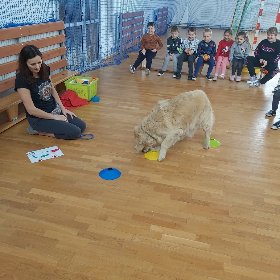 13 marca br. okazał się wyjątkowym dniem dla przedszkolaków i pierwszoklasistów, ponieważ Szkołę Podstawową w Wielkim Komorsku odwiedzili goście – Pani Patrycja wraz z Figą, psem rasy Golden Retriever. Celem spotkania było przeprowadzenie z dziećmi zajęć z dogoterapii.