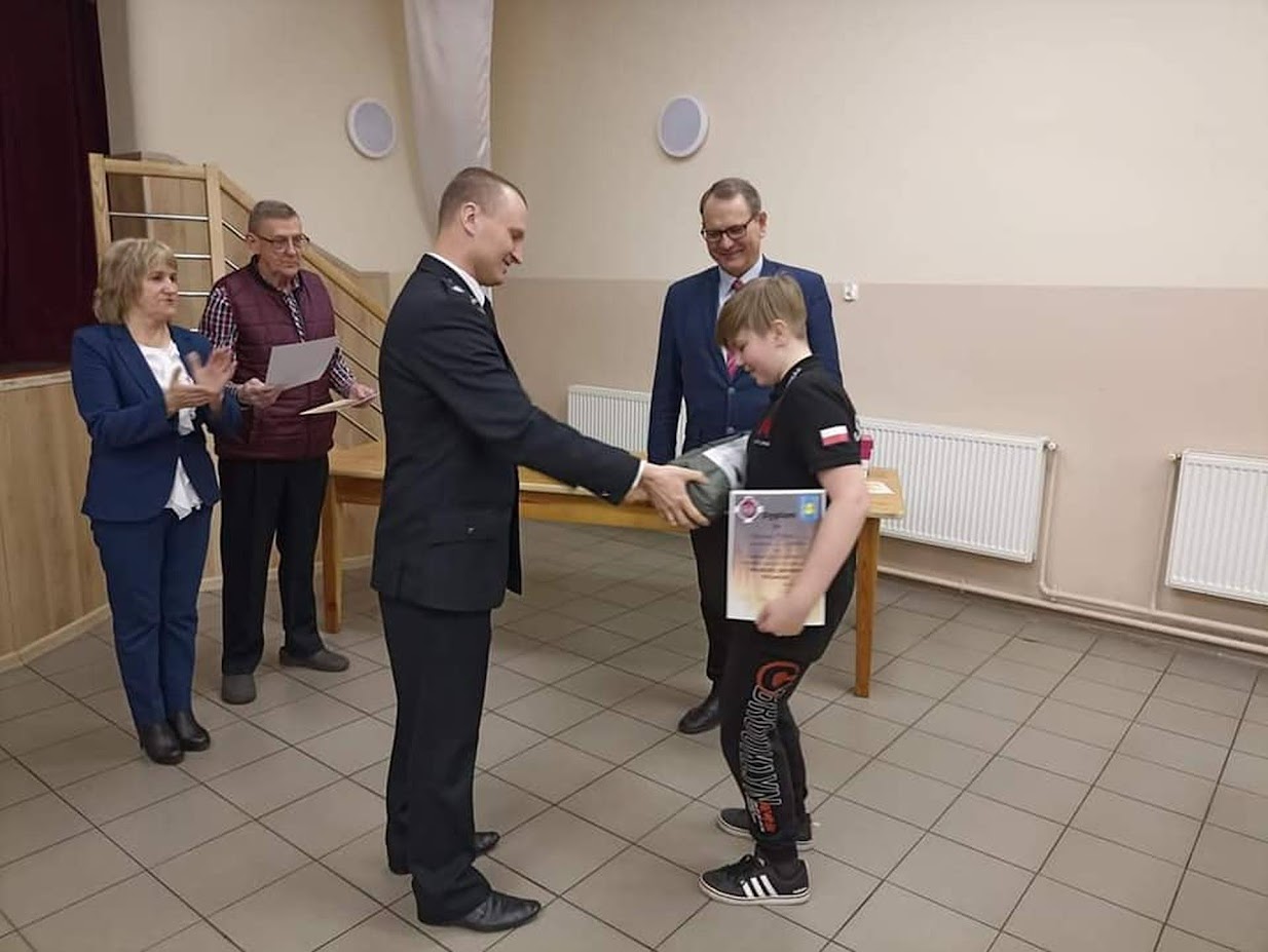 Jak co roku w Gminie Warlubie zostały przeprowadzone eliminacje do Ogólnopolskiego Turniej Wiedzy Pożarniczej „Młodzież Zapobiega Pożarom”. Miały one na celu wyłonienie reprezentantów do eliminacji powiatowych turnieju w kategorii klas V-VIII. Łącznie do konkursu przystąpiło 15 uczniów ze szkół podstawowych naszej gminy. Eliminacje polegały na rozwiązaniu testu, który składał się z 30 pytań z dziedziny pożarnictwa oraz pierwszej pomocy przedmedycznej. O kolejności zajętych miejsc decydowała suma punktów zdobytych podczas rozwiązywania testu pisemnego i odpowiedzi ustnych. Pierwsze miejsce po finale ustnym i gwarancję udziału w etapie powiatowym zdobył Adrian Menka z Publicznej Szkoły Podstawowej w Warlubiu. Gratulujemy!".
