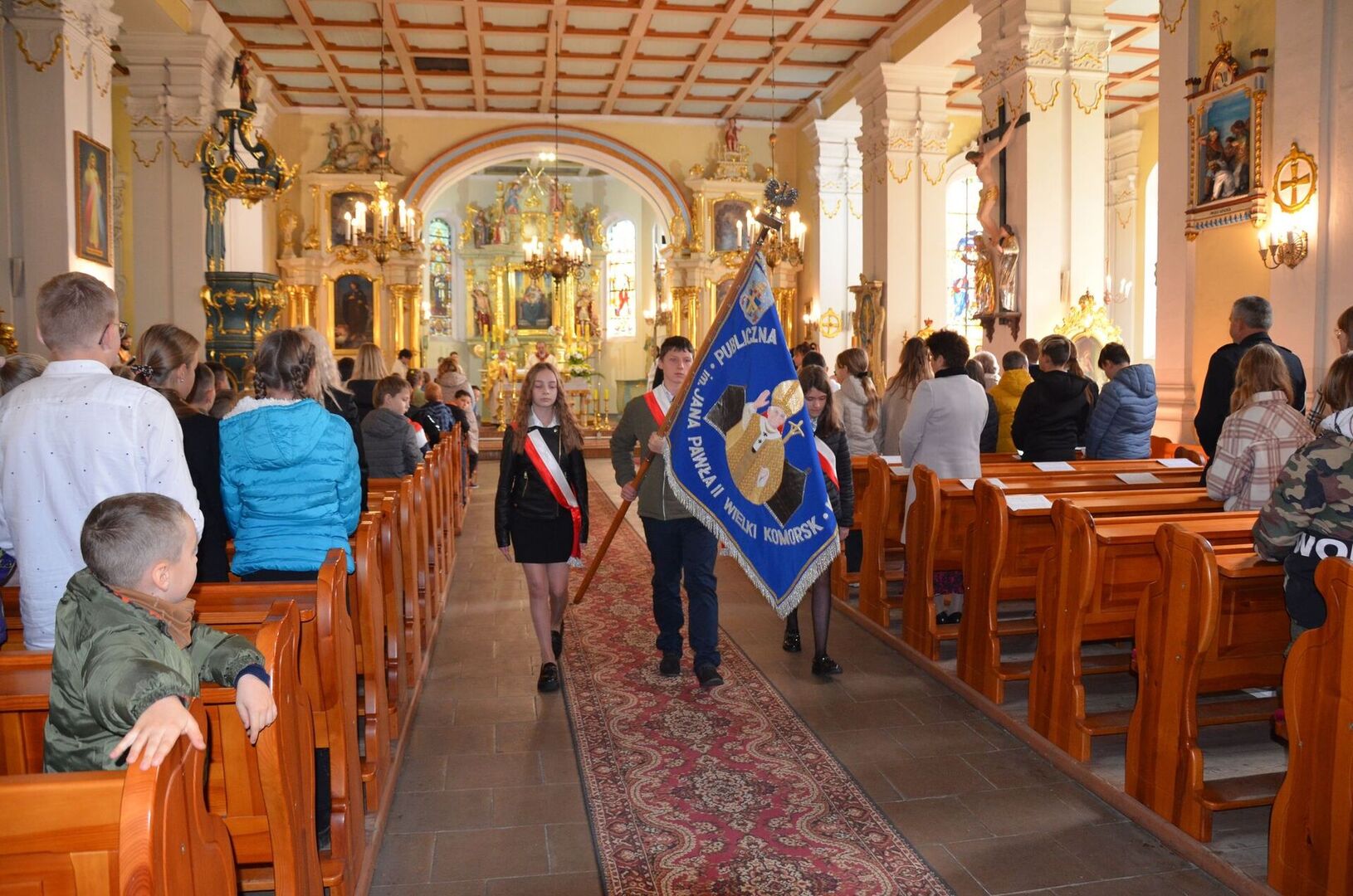 16 października 2003 r. bez wątpienia zapisał się jako jeden z najważniejszych dni na kartach historii Szkoły Podstawowej w Wielkim Komorsku. Od tego czasu Społeczność Szkoły stara się być godnymi imienia Wielkiego Polaka – św. Jana Pawła II. Społeczność szkoły zapragnęła w wyjątkowy sposób uczcić 20-lecie nadania imienia, dlatego w obecności przyjaciół Szkoły, cieszyli się wspólnie tym pięknym jubileuszem. Swoją obecnością zaszczycili ich m.in. Franciszek Koszowski – Wicestarosta Powiatu Świeckiego, Bogna Łoś – Starszy Wizytator Kujawsko – Pomorskiego Kuratorium Oświaty, Eugeniusz Kłopotek – Wójt Gminy Warlubie, Ksiądz Wacław Mielewczyk – główny inicjator nadania naszej szkole imienia, Ksiądz Jerzy Dampc – obecny proboszcz Parafii Wielki Komorsk, Maria Koniarska – dyrektor Publicznej Szkoły Podstawowej SPSK w Rychławie, byłe dyrektorki komorskiej szkoły, a zarazem inicjatorki nadania szkole imienia: Teresa Wolszlegier oraz Mirosława Danielewicz, jak też Ewa Nalazek – emerytowana nauczycielka, Kazimierz Świergal – komendant OSP Wielki Komorsk, Maria Urbańska – przewodnicząca KGW oraz Joanna Pawelczyk – przewodnicząca Rady Rodziców Szkoły.