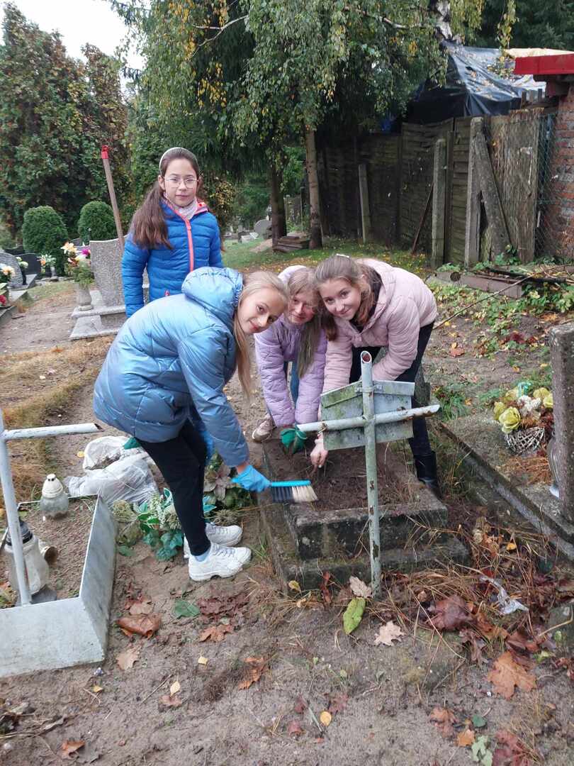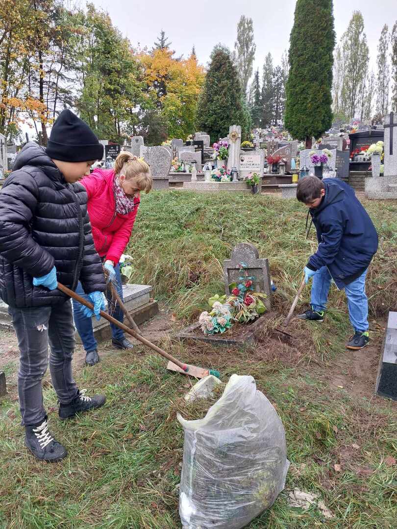 Uczniowie wraz z opiekunami odwiedzili lokalne miejsca pamięci i poznali związaną z nimi historię. Uporządkowali bezimienne i opuszczone mogiły znajdujące się na miejscowym cmentarzu, zgrabili liście i zapalili znicze.
