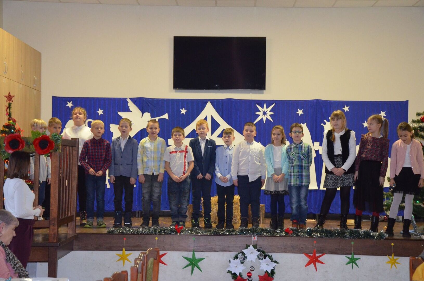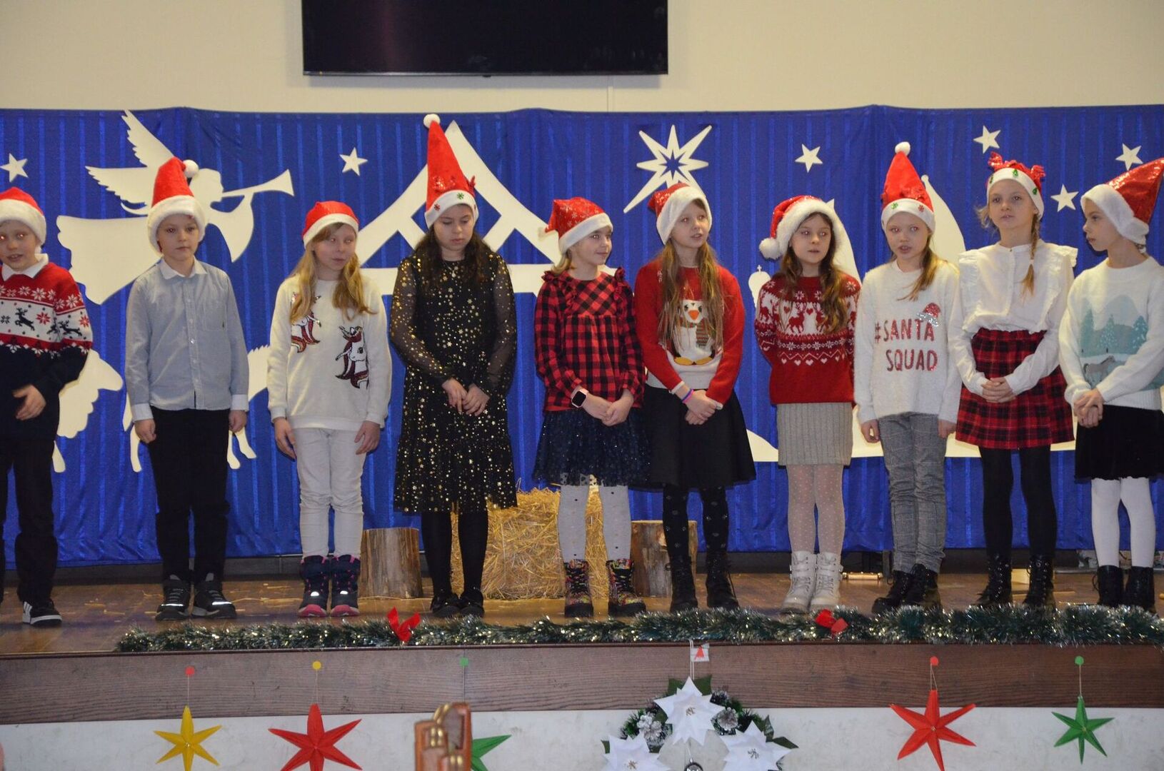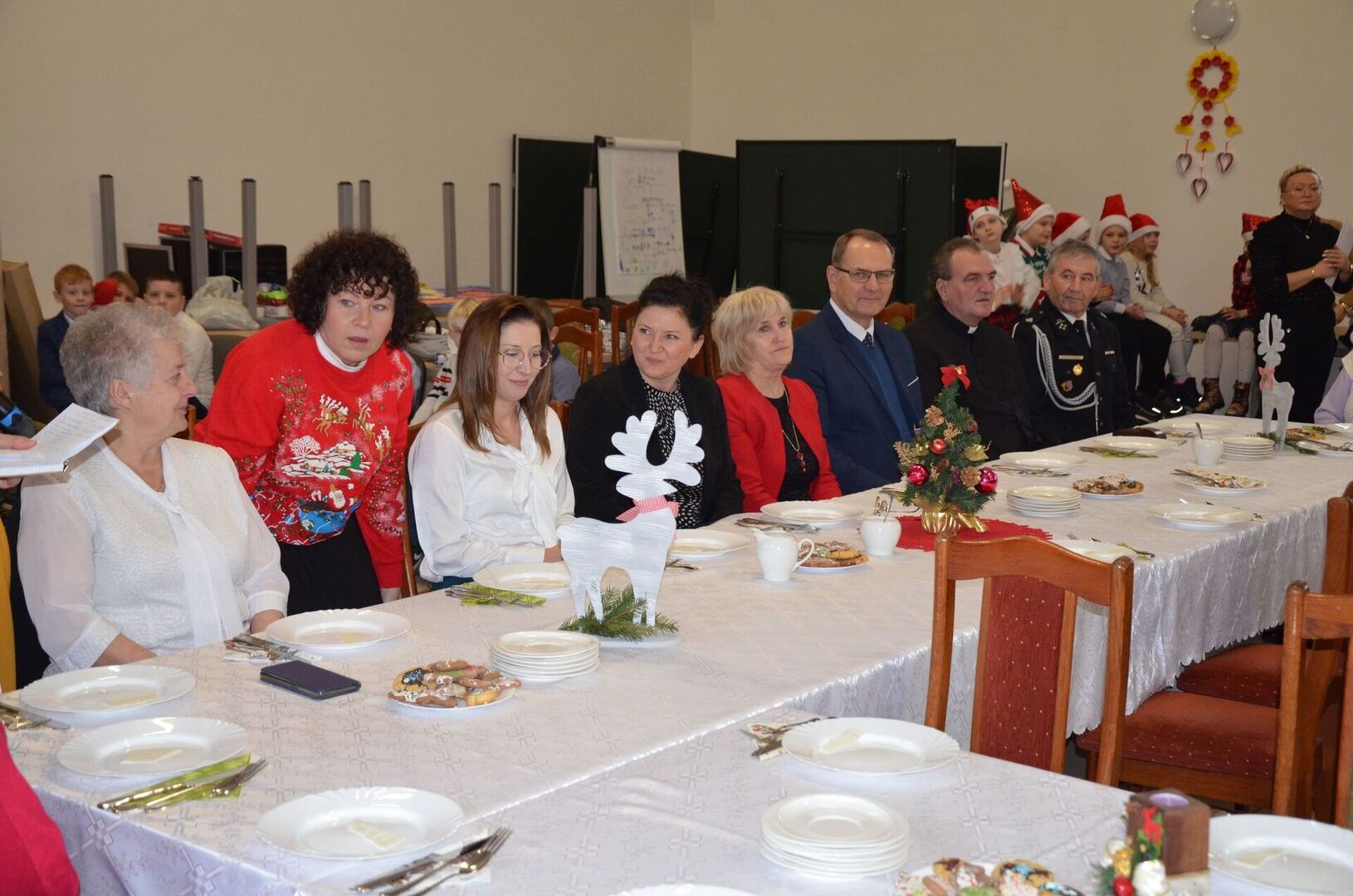 Dzieci z oddziałów przedszkolnych przygotowały jasełka, a uczniowie z klas I-IV zaśpiewali piękne kolędy i pastorałki. Po części artystycznej na saniach przyjechał Mikołaj, który obdarował naszych gości symbolicznymi upominkami. Dodatkowo upominki przygotowała również Pani Sołtys. Następnie uczestnicy spotkania podzielili się opłatkiem i złożyli życzenia: zdrowia, radości, szacunku, by każda łza była łzą szczęścia, by każde słowo wypowiedziane i usłyszane miało kształt serca...