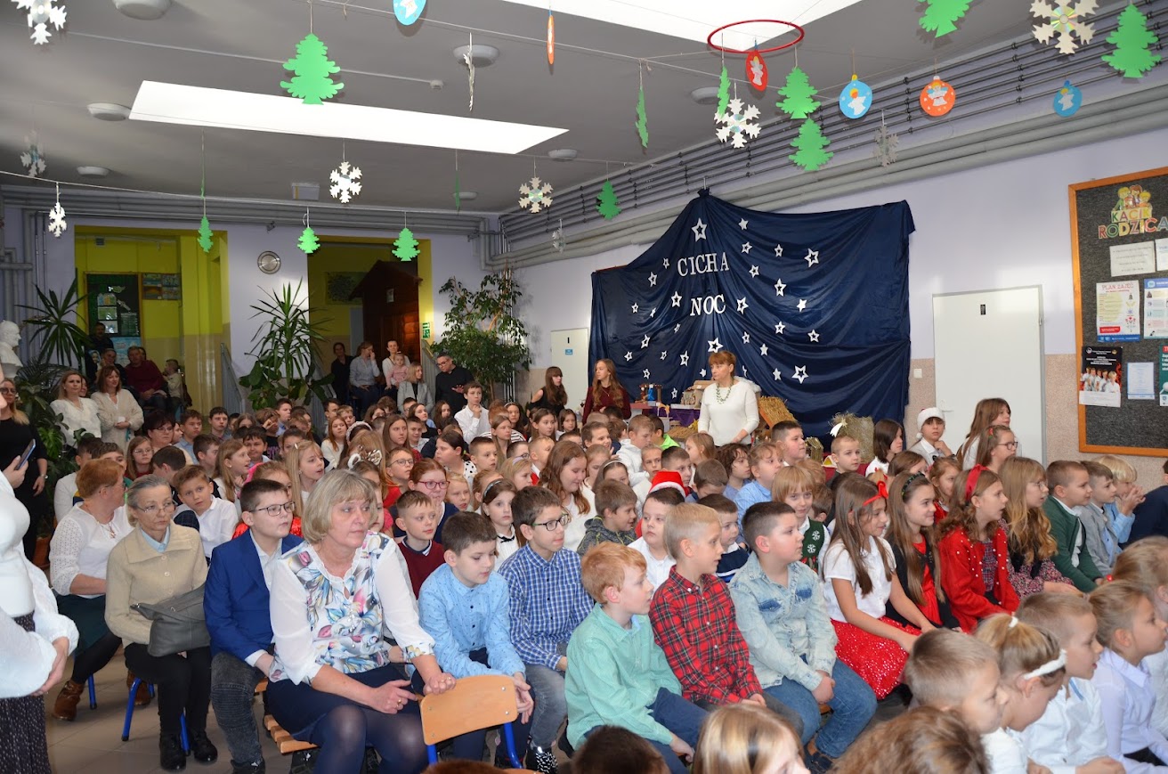 Na początku grudnia Społeczność Szkolna przystroiła świątecznie klasy, szkolne korytarze, boisko i okna, a 6. grudnia wszyscy przyszli do szkoły w ubraniach z elementami czerwieni i w mikołajkowych czapkach. Uczniowie kl. VII wcielili się w rolę Mikołaja oraz elfów i, wspólnie z opiekunkami Samorządu Uczniowskiego, zachęcili wszystkich do wspólnej zabawy w holu i wręczyli upominki ufundowane przez Radę Rodziców.