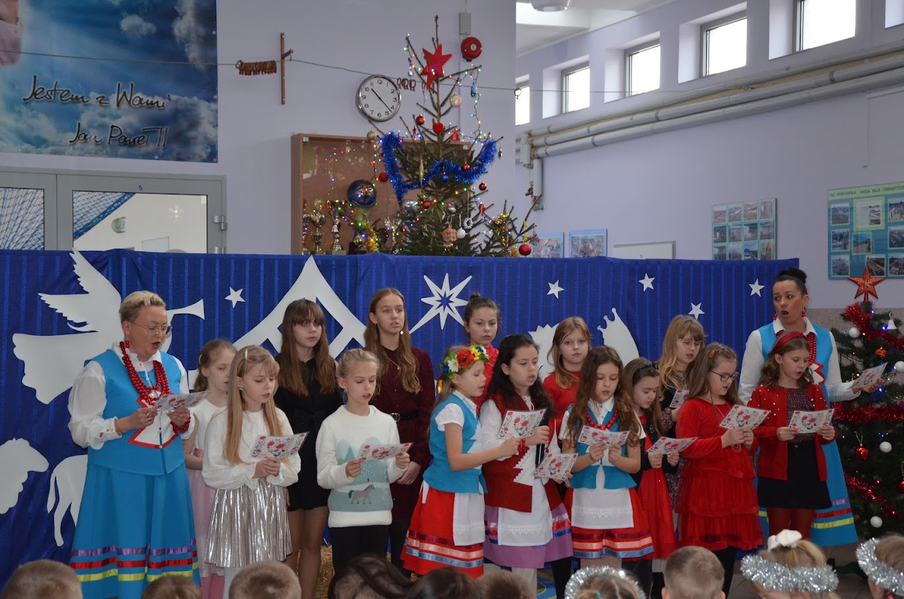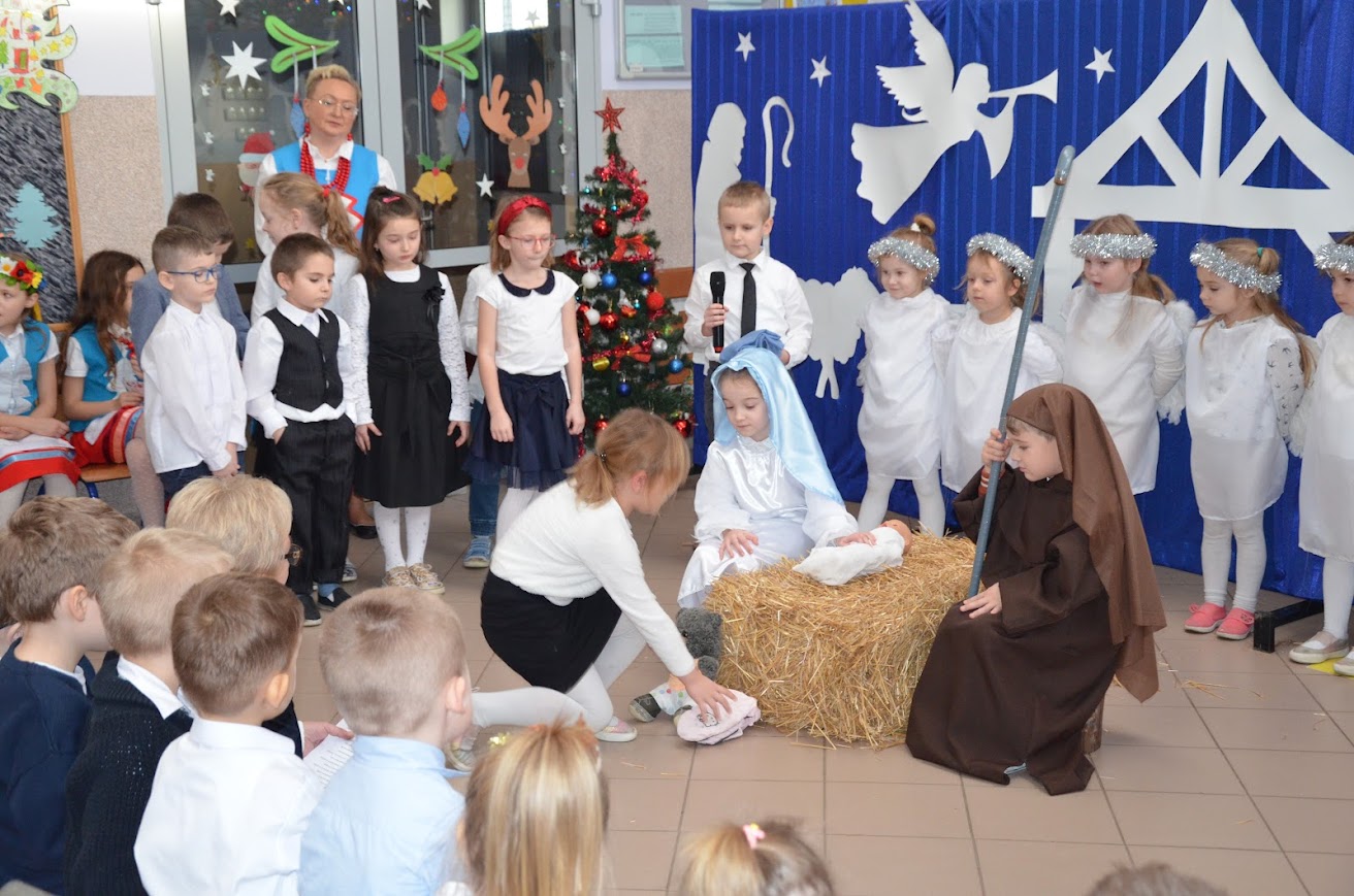 W oczekiwaniu na święta, w piątek 22.12. wszyscy przyszli do szkoły w świątecznych strojach, a w magię i atmosferę Świąt, Spoełczność Szkolną wprowadziły dzieci z oddziałów przedszkolnych oraz Kociewiacy, poprzez Jasełka i kociewskie kolędy i pastorałki. Uczniowie z wychowawcami i nauczycielami wspólnie zasiedli przy wigilijnym stole, wymienili się życzeniami świątecznymi, obdarowując się drobnymi upominkami, tworząc wyjątkową atmosferę, pełną ciepła, życzliwości i radości.